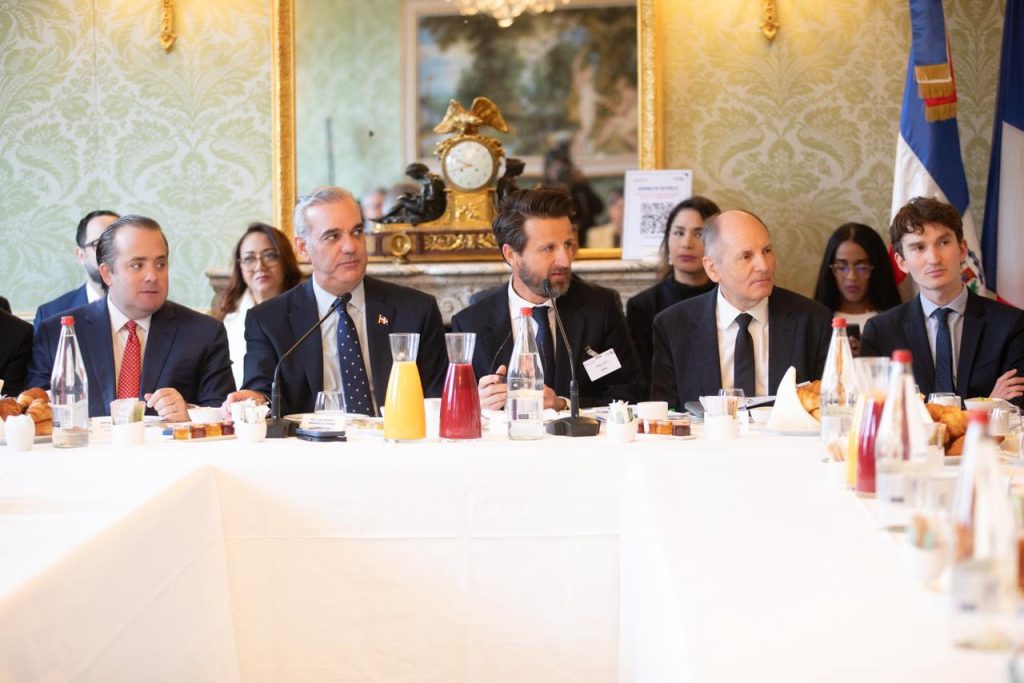 París, Francia. – El presidente Luis Abinader sostuvo este miércoles un encuentro estratégico con líderes empresariales franceses con el propósito de fortalecer los vínculos comerciales entre la República Dominicana y Francia y captar nuevas inversiones que permitan además, diversificar la matriz productiva nacional.